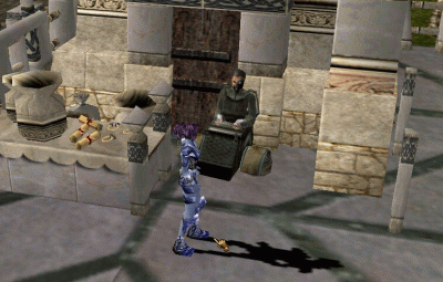 車椅子の天才(?)歴史学者ベリオンさんです。 イシュミロンの石像やデカドンの古代文書について研究している方です。 調査中の事故でしょうか、最近はフィールドには自分では出向かないそうで、 冒険者に”クエスト”という形で依頼しています。 |