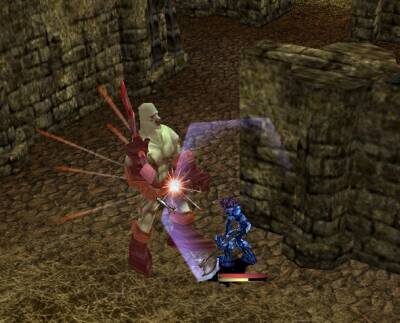 えりゃぁ!てやぁ! 緑はげのおじさんたち相手に斧の訓練ですよ。 |