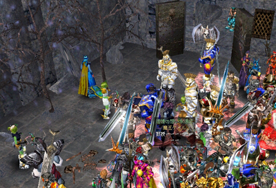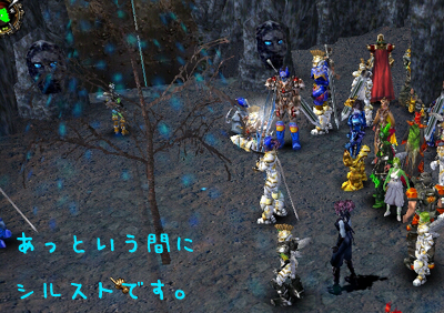 この大人数だと、先頭集団がモンスターを皆殺しにしてるので、 ただ走って付いていくだけです。 必死で前の人を追いかけてたらいつの間にかシルストダンジョンです。 |